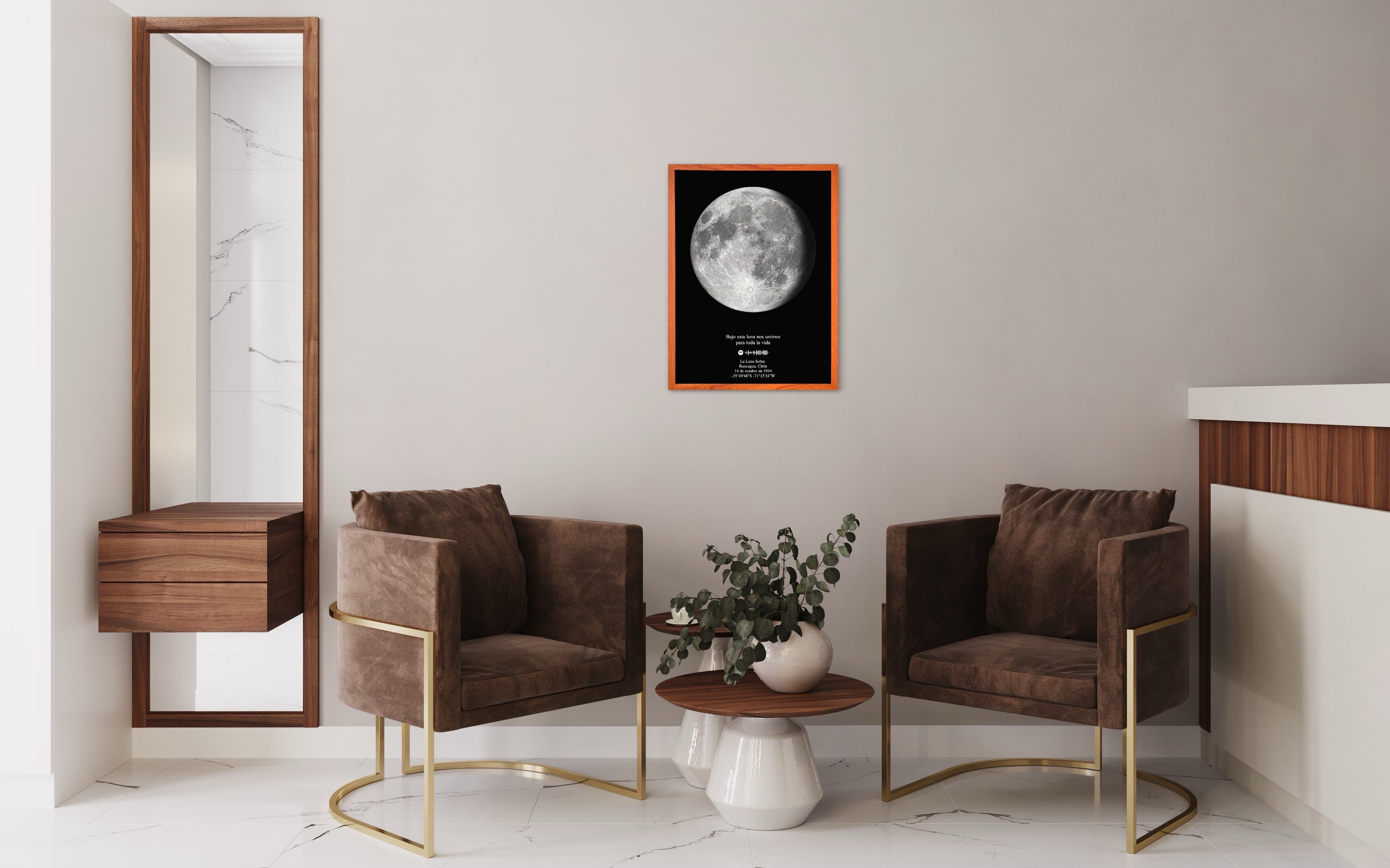 Descubre la fase lunar que iluminaba el cielo en ese momento tan especial de tu vida gracias a nuestros trabajos personalizados.