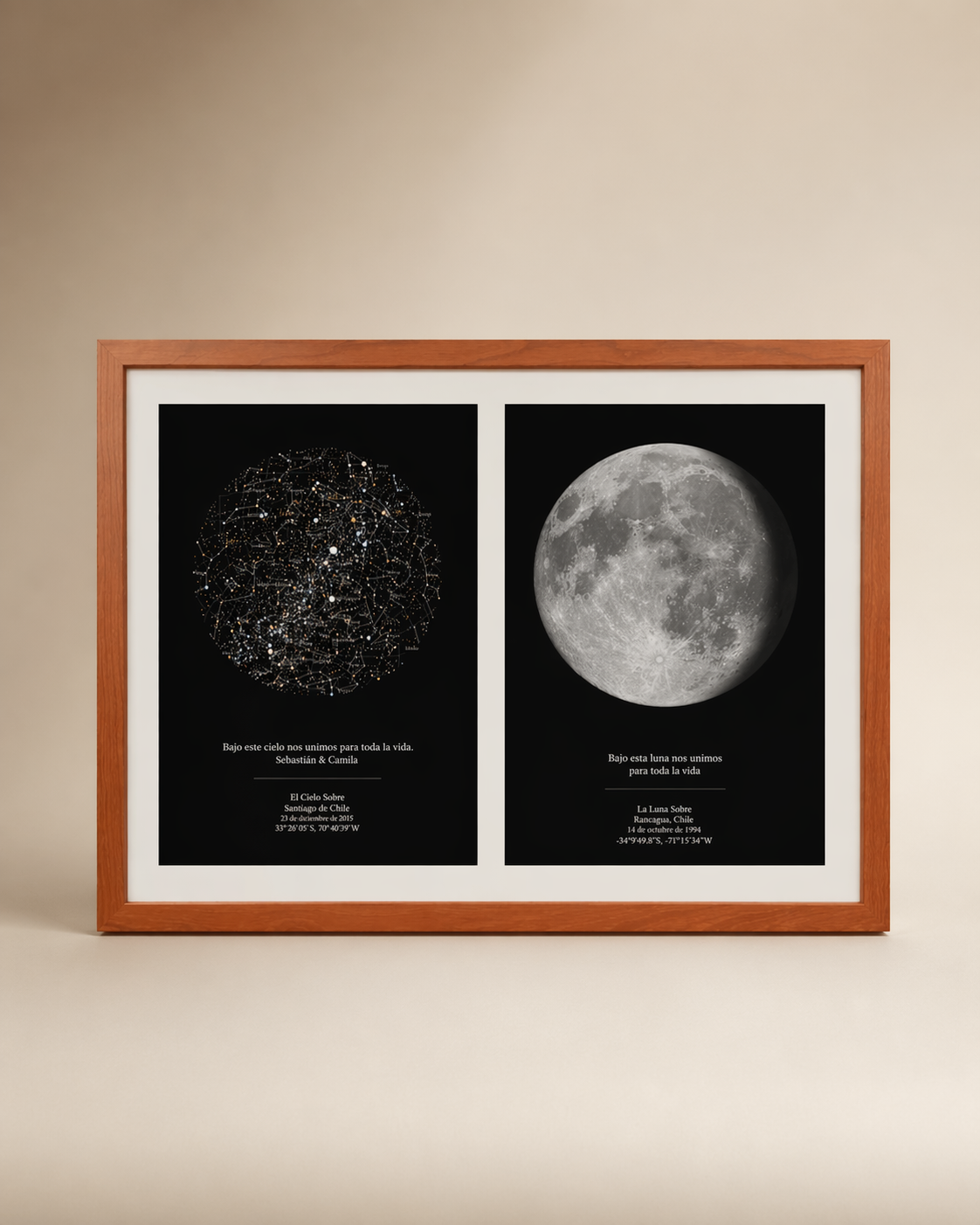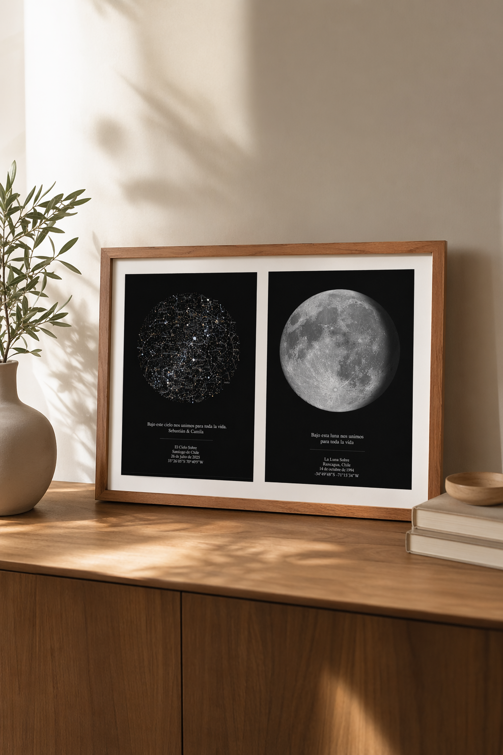 Porque con el Mapa Lunar XXL sorprendes en grande: muestras la fase lunar exacta en un acabado premium, lista para decorar cualquier rincón y recordar ese instante que lo cambió todo.